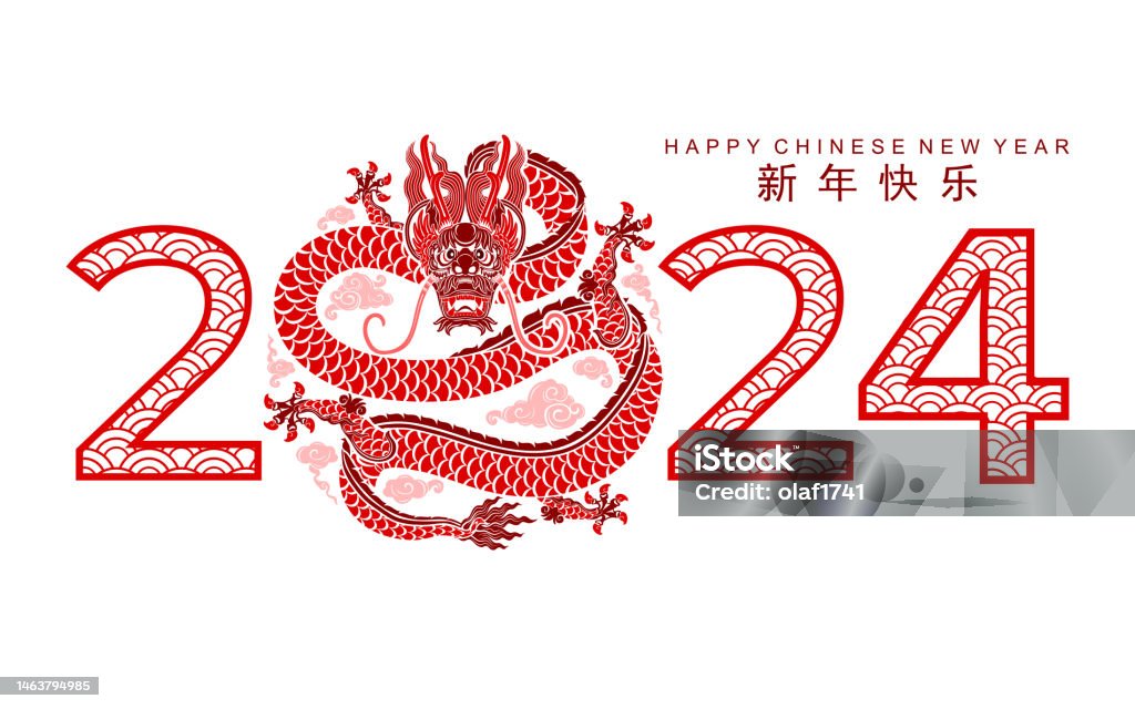 Happy chinese new year 2024 Zodiac sign, year of the Dragon, with